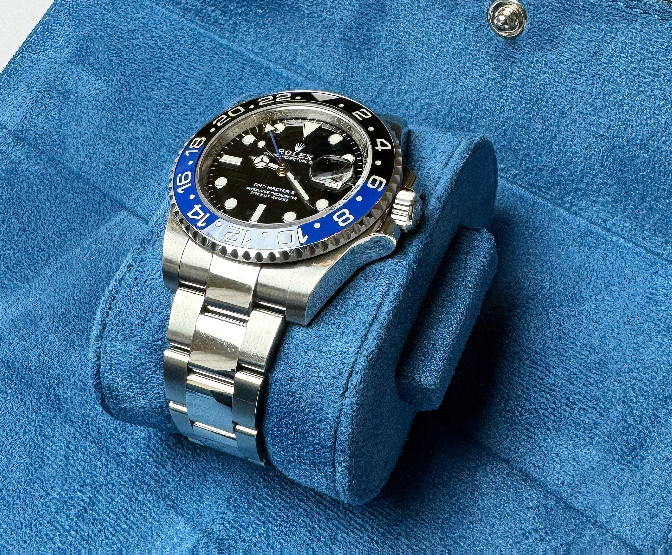 Soft suede pillow slides into the watch roll allowing your watch a safe storage place.